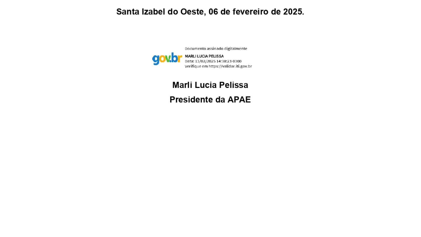 Santa Izabel do Oeste, 06 de fevereiro de 2025.